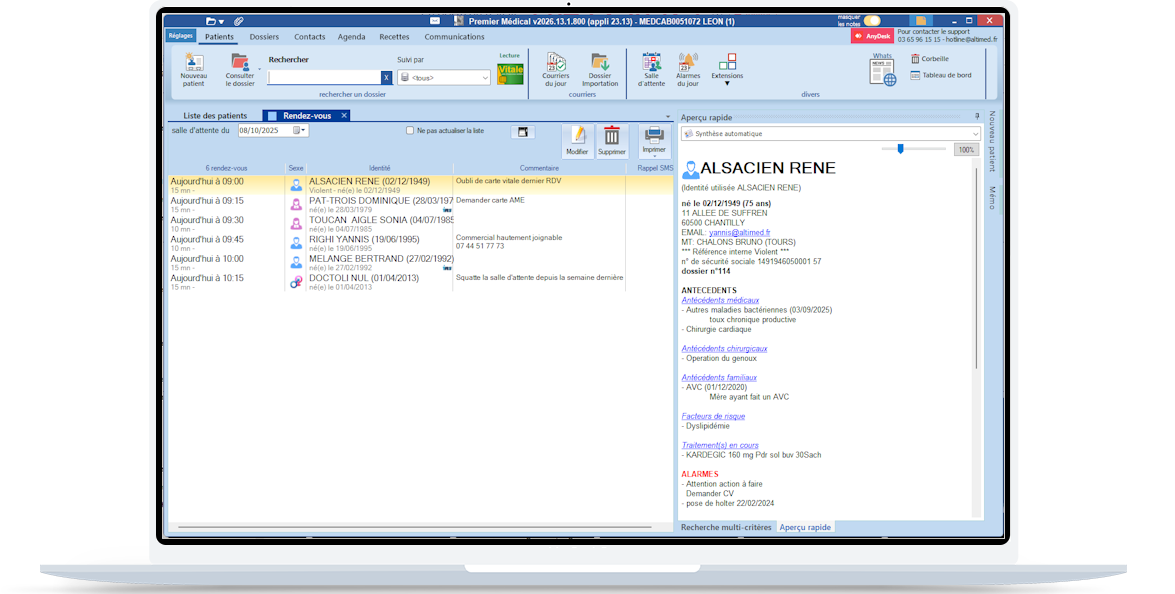 Les logiciels Altimed Informatique proposent une interface résolument innovante dotée d'un espace de travail unique sans aucune fenêtre bloquante.