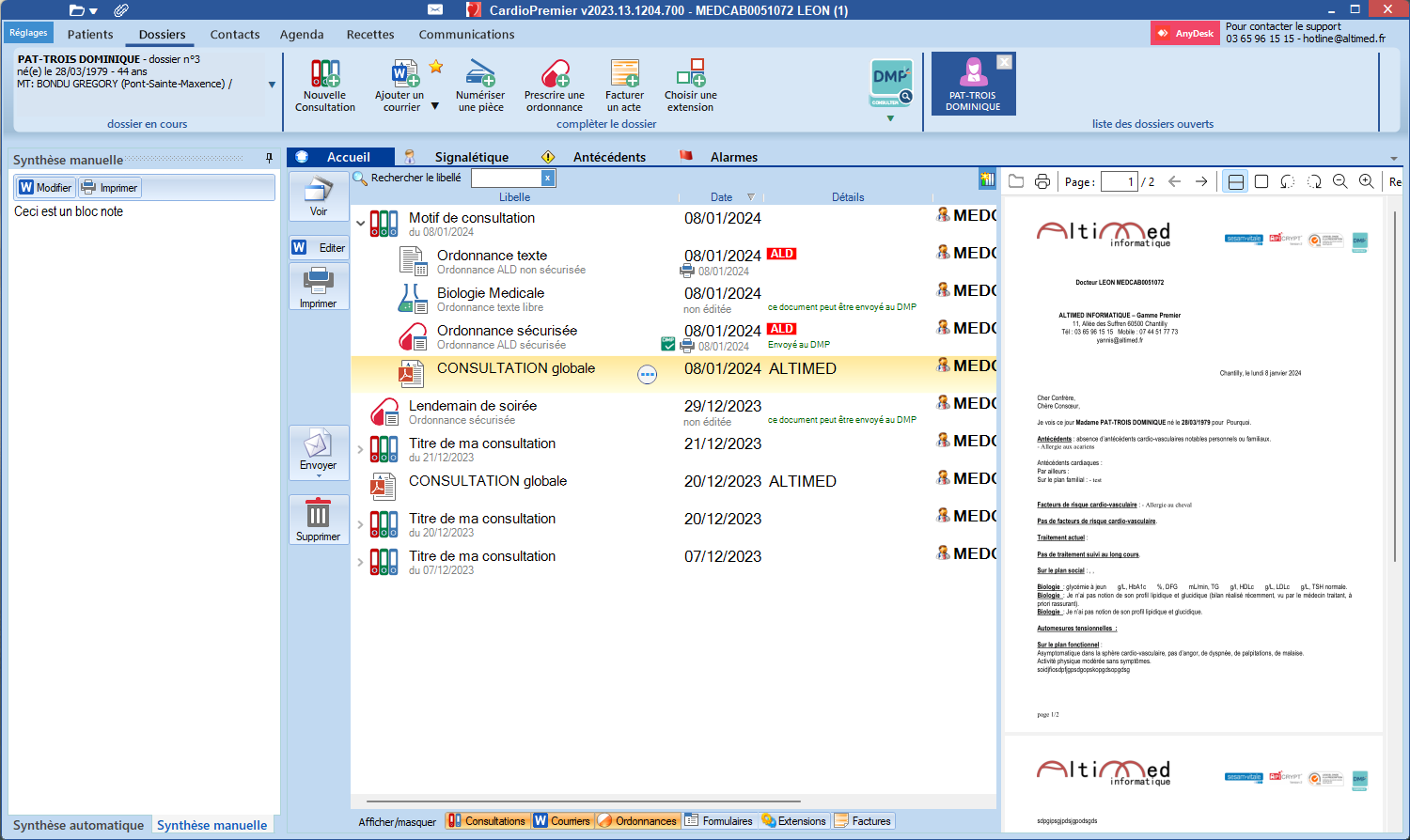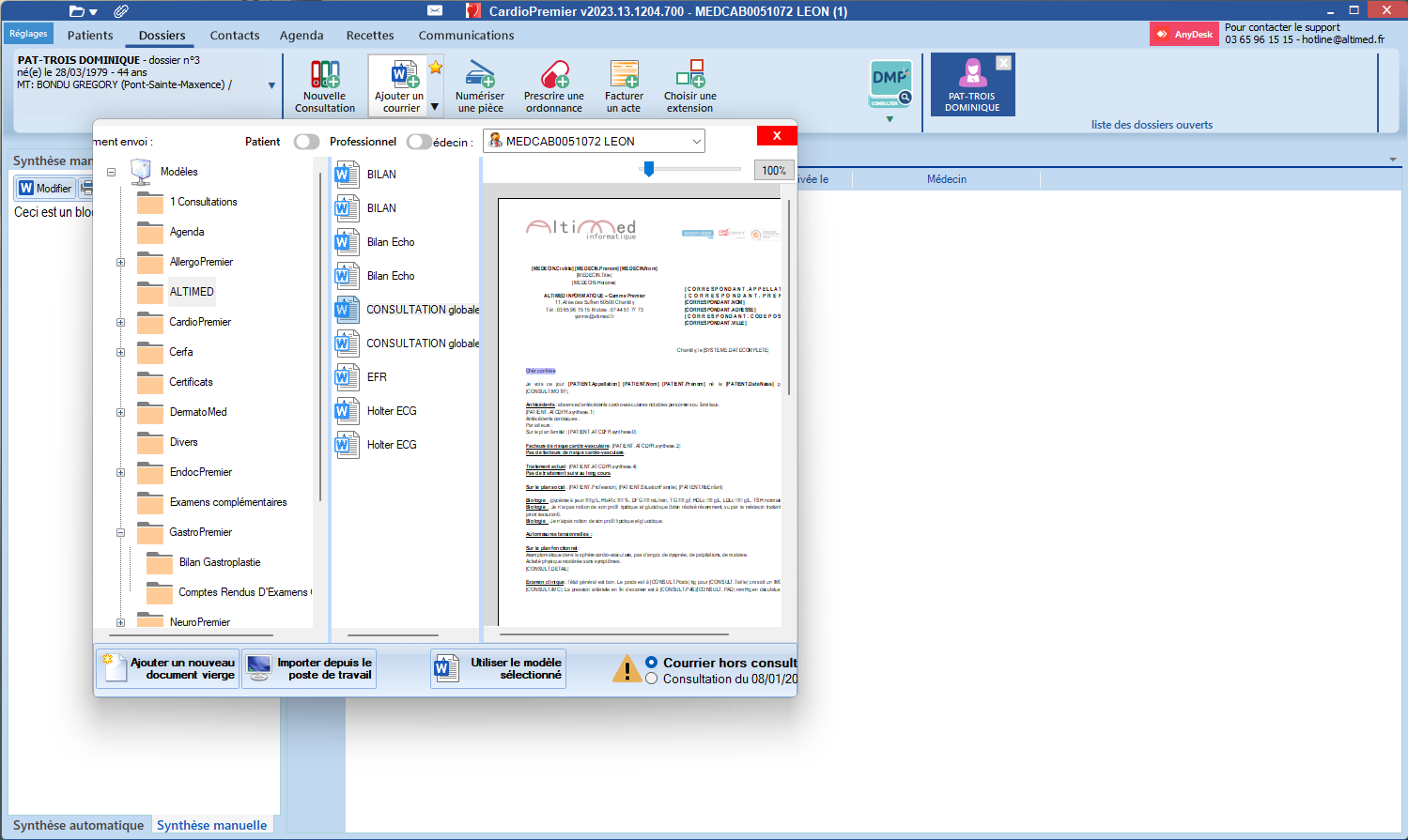 Créez vos courriers rapidement avec la bibliothèque de modèles. Échangez simplement avec vos confrères et patients grâce à AltiMail.
